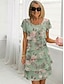 Жен. Платье до колена Шифоновые платья Цветочное платье Элегантный стиль Мода Современное Отпуск Для вечеринок выходные Стандартный Цветочный принт С короткими рукавами Вырез под горло Зеленый Хаки