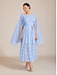 Жен. Длинное платье Платье A-силуэта Элегантный стиль Крылышко Свадебный гость Свидание Чаепитие Кружева Стандартный Сплошной цвет Без рукавов Вырез под горло Небесно-голубой