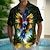 Муж. Бабочка Рубашка Гавайская рубашка Рубашка Алоха Длинный рукав Рубашка Отложной Мода Уличный стиль Оригинальный рисунок Повседневные на открытом воздухе Для улицы Белый Желтый Зеленый S M L