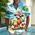 Муж. Цыпленок Рубашка Пляжная рубашка С короткими рукавами Веселая Лето Весна Отложной Кнопка вверх Синий