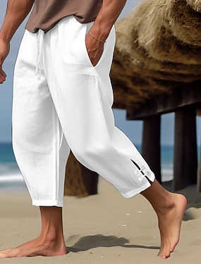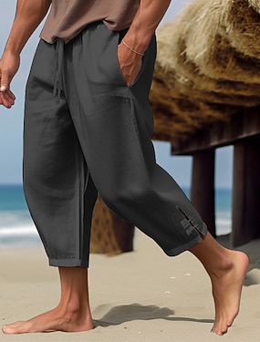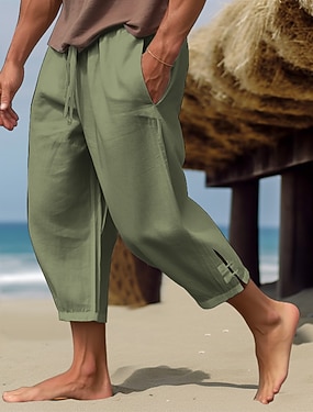 Муж. Рубашка Льняная рубашка Поповер Рубашка Летняя рубашка Одежда для пляжа Полотняное плетение Отпуск Повседневные Черный Цвет хаки Светло-синий Длинный рукав Воротничок Весна лето Одежда