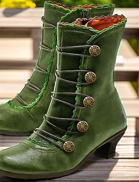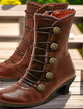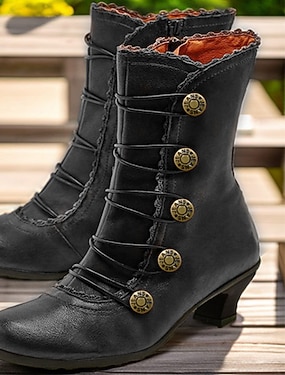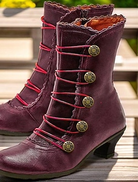 Жен. Ботинки Ботинки на пуговицах Большие размеры Ботильоны Ботильоны Повседневные Сплошной цвет Ботильоны Ботильоны Блочная пятка Круглый носок Элегантный стиль Винтаж Мода Искусственная кожа