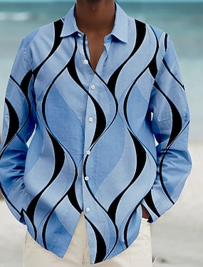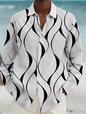 Муж. Геометрический принт Полосы / волосы Геометрический рисунок Кнопка рубашка Футболки с принтом С короткими рукавами Гавайский Прибегнуть Повседневные Праздники Лето Отложной С принтом Кнопка вниз