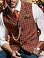 Муж. Жилет Рождество на открытом воздухе Отпуск Для вечеринок Мода Уличный стиль Весна Осень Пуговицы Полистер Воздухопроницаемость В клетку Однобортный крой V-образный вырез Узкий крой Красный Жилет