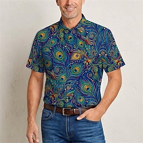 Ретро Хиппи В стиле 1970-х Рубашка Короткие рукава Хиппи Павлин Маскарадный костюм Муж. музыкальный фестиваль Для вечеринок На каждый день Взрослые Рубашка Весна лето