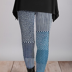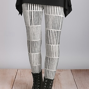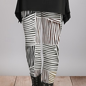 Жен. Брюки Леггинсы Уютные леггинсы Уличный стиль На каждый день Полная длина Завышенная Полоса Эластичная талия С принтом Воздухопроницаемость Удобный Эластичная Отпуск Для улицы На каждый день
