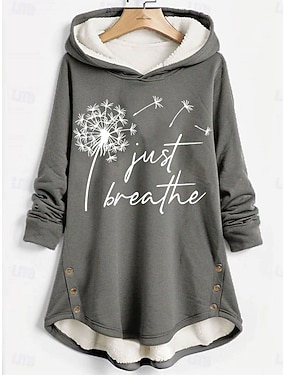 Жен. Толстовка с капюшоном и пуловером Графика Буквы одуванчик На каждый день Комфорт Длинный рукав Капюшон Длинные топы Для улицы На каждый день Повседневные С принтом Темно-розовый Синий Серый