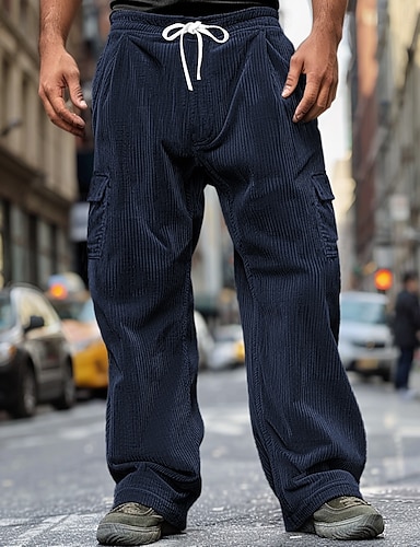 Муж. Брюки карго Вельветовые брюки Штаны Мешковатые брюки Повседневные брюки Карман Эластичная талия Прямая нога Полотняное плетение Комфорт Мягкий Полная длина