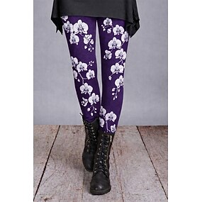 Жен. Леггинсы Уютные леггинсы Отпуск Винтаж Классический Полная длина ЗавышеннаяPantsНовогодняя тематика Цветочный принт Рисунок Удобный Эластичная Повседневные на открытом воздухе Отпуск