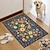 Винтажный цветочный коврик для входной двери с ярким цветочным рисунком на темно-синем фоне, прочный декоративный коврик для прихожей.