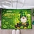 Придверный коврик ко Дню Святого Патрика с изображением гнома, сидящего на золотом горшочке с пивом и клевером, в зеленом праздничном стиле для украшения прихожей.