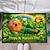 Придверный коврик ко Дню Святого Патрика с двухмерным плоским принтом в виде сияющего четырехлистного клевера в зеленых, оранжевых и белых тонах, идеально подходящий для праздничного декора.