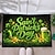 Коврик для входной двери ко Дню Святого Патрика с тематическим дизайном, украшенный блестящим зеленым текстом, шляпой лепрекона, пивной кружкой и клевером.