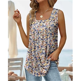 Жен. Летние вершины С принтом Асимметричный вырез Несколько слоев Геометрический принт Растения Богемия Мода Секси Без рукавов Без рукавов U-образный вырез Обычные топы Повседневные На выход выходные