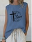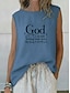 Жен. Летние вершины Блуза Безрукавка С принтом Буквы Винтаж Повседневные Стиль Без рукавов Вырез под горло Обычные топы Повседневные Праздники На выход Синий Черный Белый Розовый Лето Весна