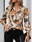 Жен. Блуза Шнуровка С принтом Цветочный принт Элегантный стиль Стиль Классический Рукав 3/4 V-образный вырез Обычные топы Повседневные Оранжевый Коричневый Хаки Лето Весна Осень
