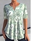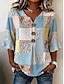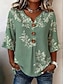Жен. Блуза Пуговицы С принтом Цветочный принт Графика Винтаж Стиль Современное Рукав до локтя Рубашечный воротник Обычные топы Повседневные Розовый Светло-лиловый Хаки Лето Весна