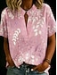 женская блузка пуговицы принт цветочный графический отпуск винтаж повседневная короткий рукав текстурированная ткань рубашка воротник обычный топы повседневный отдых выход на улицу розовый лето весна