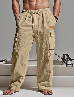 Муж. Льняные брюки Спортивные брюки-карго Штаны Летние штаны Кулиска Эластичная талия Мульти карман Полотняное плетение Комфорт Дышащий Полная длина на открытом воздухе Повседневные Мода Классический