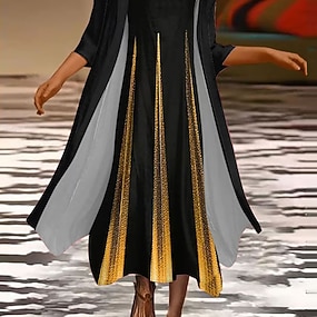 Жен. Платье Комплект Длинное платье Платье прямого кроя Летнее платье На каждый день Графика Геометрический принт Многослойный С принтом Длинное платье Рукав 3/4 Вырез под горло Повседневные