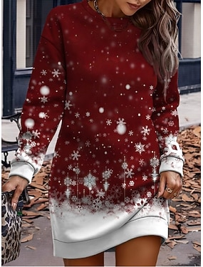 Новогодняя тематика Жен. Платье до колена Платье-свитер Платье прямого кроя Отпуск На каждый день День рождения Свидание Стандартный Графика Уродливое Рождество Длинный рукав Вырез под горло