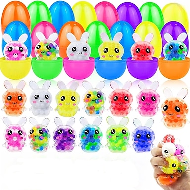 Набор из 12 пасхальных яиц, наполненных антистрессовыми мячиками в виде зайчиков, 12 цветов, антистрессовые мячики для детей, мальчиков и девочек, наполнители для пасхальной корзины, сувениры для