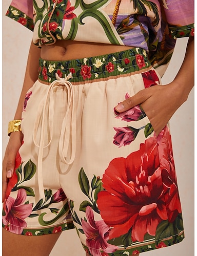 Гавайские пальмовые легкие льняные шорты с цветочным принтом