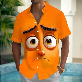 Муж. Мультипликация Смешной Большие глаза Рубашка Летняя рубашка Кнопка рубашка С короткими рукавами Мода Повседневная на открытом воздухе Отпуск Праздники Лето Весна Отложной 3D