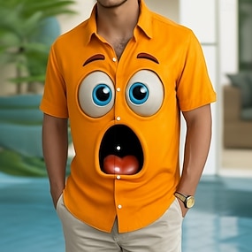 Муж. Мультипликация Смешной Улыбающееся лицо Рубашка Летняя рубашка Кнопка рубашка С короткими рукавами Мода Повседневная на открытом воздухе Отпуск На каждый день Лето Весна Отложной 3D