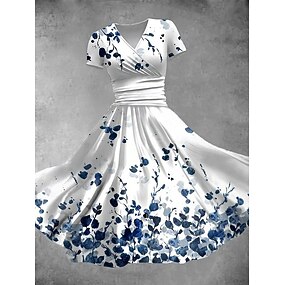 Жен. Платье средней длины Платье прямого кроя Летнее платье Элегантный стиль Отпуск На каждый день Стандартный Цветочный принт Графика С короткими рукавами V-образный вырез Синий Красный Светло-синий