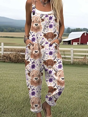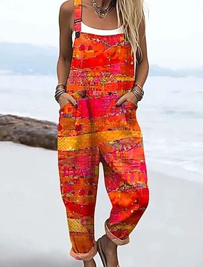 Жен. Комбинезон Активный Графика Без рукавов Широкие С принтом Повседневные Отпуск Свободное облегание Синий Желтый Лиловый Лето