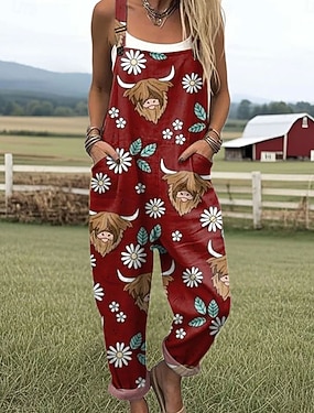 Жен. Нормальная Комбинезоны Уличный стиль Цветочный принт Без рукавов U-образный вырез Карман С принтом Для улицы На выход Стандартный Черный Красный Синий Лето