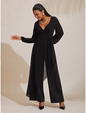 Жен. Нормальная Комбинезоны Уличный стиль Сплошной цвет Длинный рукав Прямой силуэт V-образный вырез Завышенная Сетка Для вечеринок Офис Стандартный Черный Весна