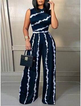 Жен. Нормальная Комбинезоны Элегантный стиль Цветочный принт Без рукавов Широкие Круглый вырез С принтом Повседневные Отпуск Стандартный Синий Черный Розовый Лето