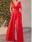 Жен. Комбинезон Элегантный стиль Сплошной цвет С короткими рукавами Багги Шорты V-образный вырез Пэчворк Повседневные Отпуск Стандартный Красный Коричневый Зеленый Лето