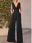 Жен. Нормальная Комбинезоны Стиль Сплошной цвет С короткими рукавами V-образный вырез Кулиска Для вечеринок Офис Свободное облегание Черный Весна