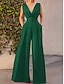 Жен. Нормальная Комбинезоны На каждый день Сплошной цвет Без рукавов V-образный вырез Карман На выход выходные Стандартный Черный Светло-зеленый Военно-зеленный Лето