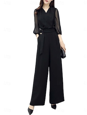 Жен. Нормальная Комбинезоны Элегантный стиль Сплошной цвет Рукав 3/4 Широкие V-образный вырез Карман Повседневные Отпуск Свободное облегание Синий Черный Белый Лето