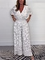 Жен. Комбинезоны На каждый день Сплошной цвет С короткими рукавами Широкие V-образный вырез Кружева Повседневные выходные Стандартный Серый Лето
