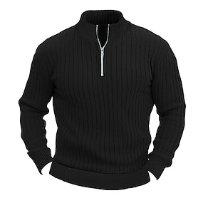 Муж. Вязаная одежда Пуловер Рельефный узор Вязать Обычный Классический Полотняное плетение Четверть молния Сохраняет тепло Современный современный На каждый день На выход Одежда Осень Зима