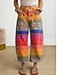 Карнавальные женские брюки с широкими штанинами Из льняного материала Брюки Для отпуска Винтажный этнический стиль Полной длины Высокая талия Графический градиент Карман Эластичный пояс Печать