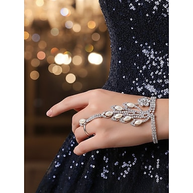 женский браслет-цепочка на руку с жемчужными листьями и стразами — элегантное украшение для вечерних, свадебных и официальных мероприятий