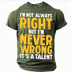 Муж. Смешной печать букв Футболка 100% хлопок С короткими рукавами Графика Рубашка Черный Военно-зеленный Удобная футболка Для улицы Для спорта и активного отдыха Модельер одежды