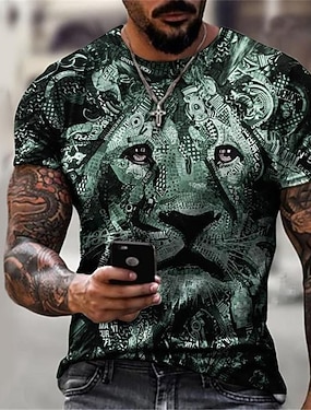 Муж. Графика Викинг Футболка Длинный рукав Футболка 3D печать Вырез под горло Рубашка Мода На каждый день Курортный стиль Отпуск Праздники На выход Синий Зеленый Серый Весна & осень Одежда S M L XL