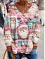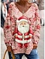 Новогодняя тематика Жен. Футболка Графика Дед Мороз Винтаж Стиль Классика С короткими рукавами Вырез под горло Обычные топы Повседневные С принтом Розовый Синий Зеленый Осень Зима