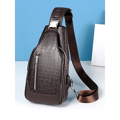 Мужская кожаная сумка-слинг, водонепроницаемая и прочная, большой вместимости, со стильным рисунком под крокодила для использования на открытом воздухе и повседневного использования