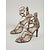 Босоножки на шпильке с открытым носком, украшенные золотыми стразами, для женщин с ремешками — идеально подходят для свадеб или вечерних мероприятий