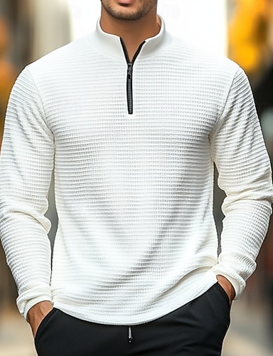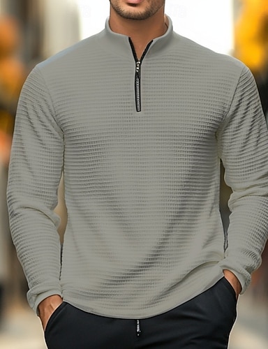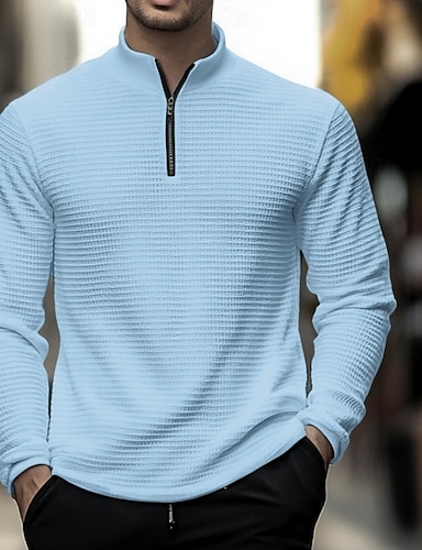 Муж. Футболка с вафельным рисунком Футболка Толстовки на молнии Длинный рукав Четверть молния Зима Весна & осень Осень Сплошной цвет Традиционный / винтаж Капюшон