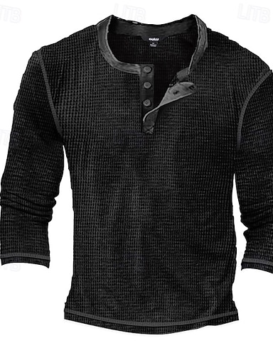 Муж. Вафельная рубашка Футболка Рубашка с длинным рукавом Длинный рукав Вырез под горло Весна & осень Полотняное плетение Мода Оригинальный рисунок Классический Отпуск Для улицы На выход