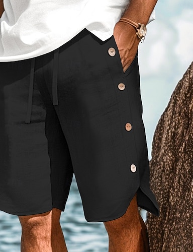 Муж. Рубашка льняная рубашка Летняя рубашка Одежда для пляжа Кнопка рубашка Полотняное плетение Отпуск Кьюриз Черный Белый Розовый Темно синий С короткими рукавами Воротничок Лето Весна Одежда